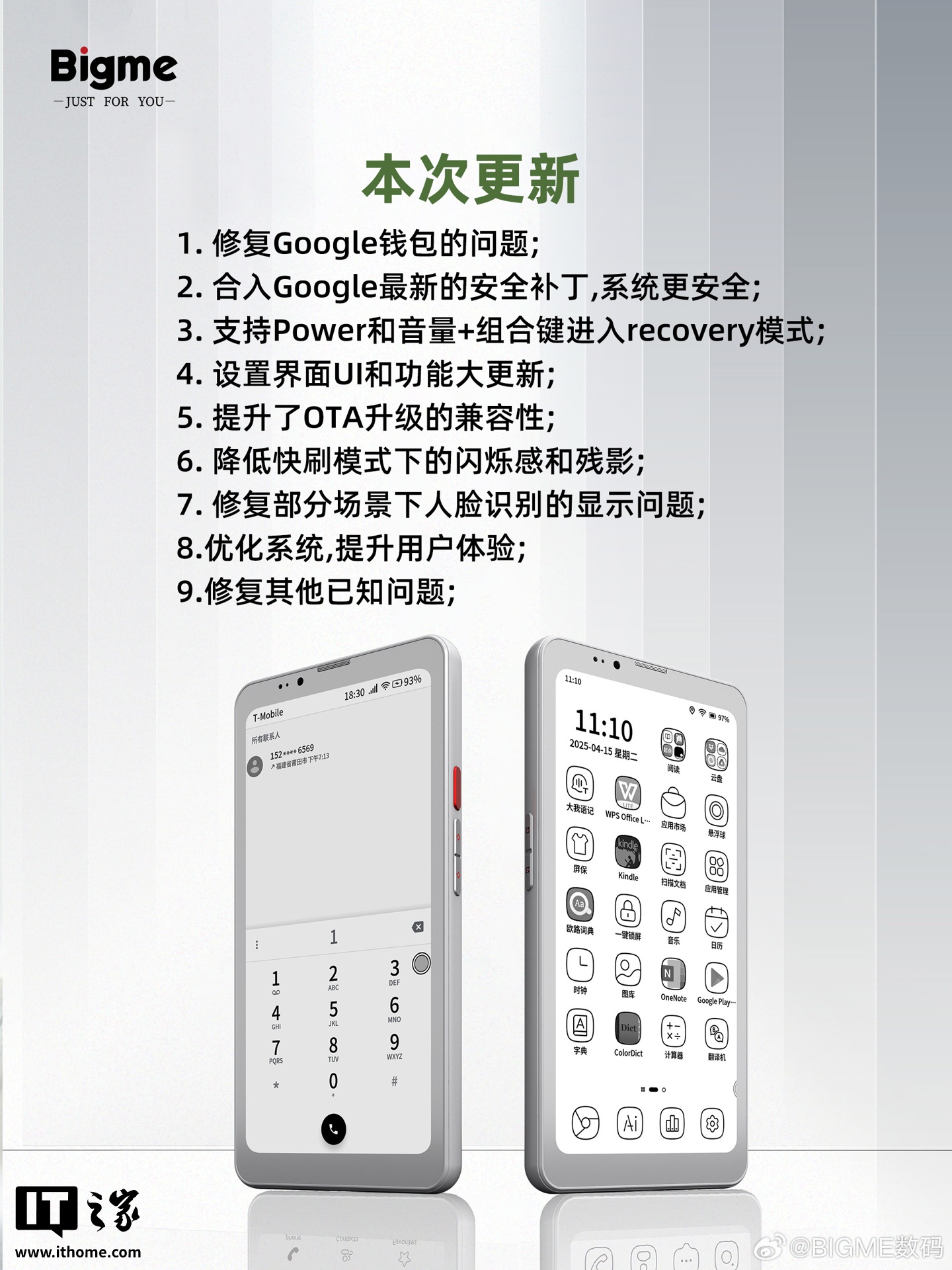 支持组合键进入 recovery 模式,Bigme 大我 HiBreak Pro 墨水屏手机获 2.4.8 固件更新