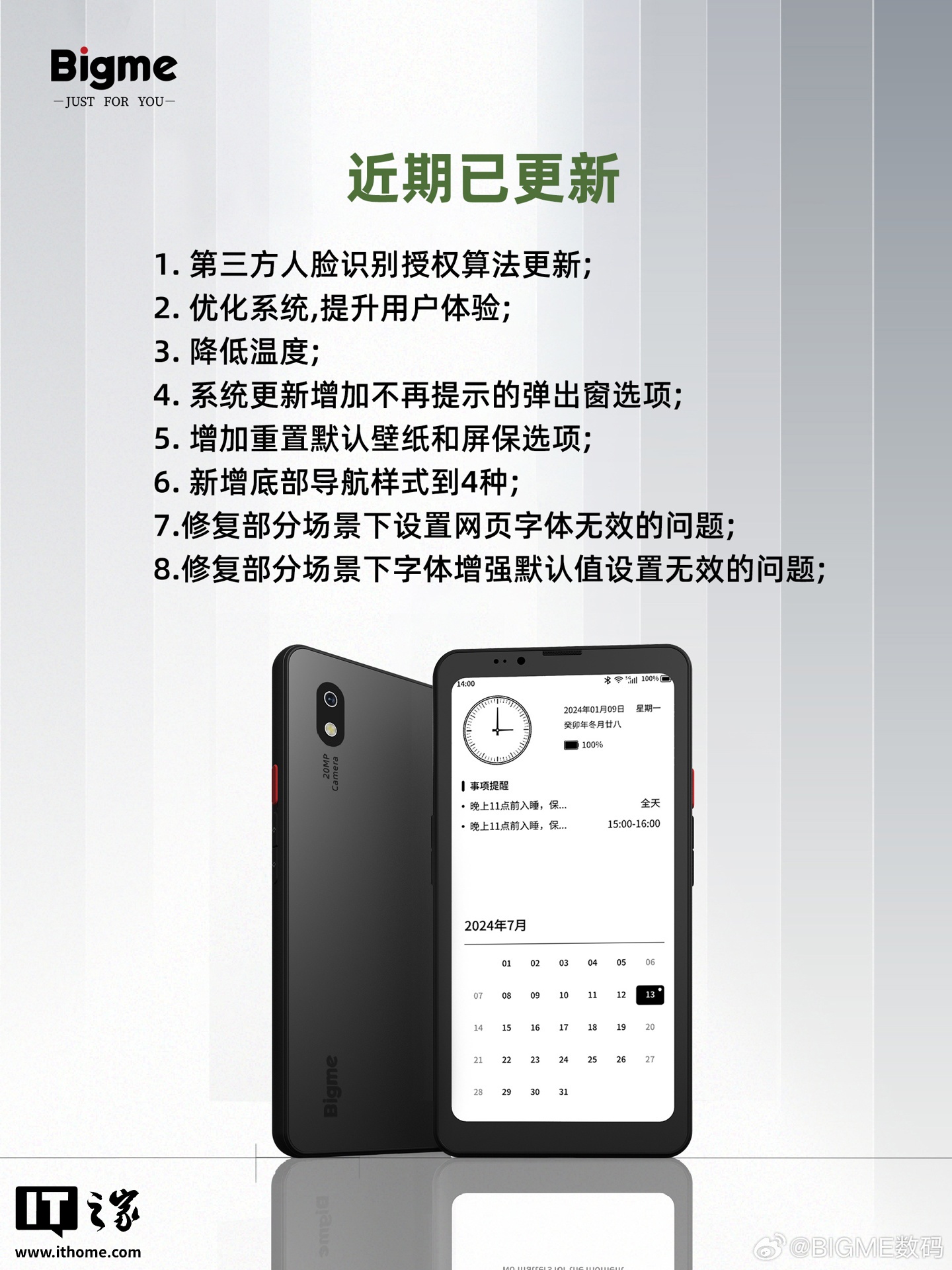 IT之家附 Bigme HiBreak Pro 墨水屏手机此次更新内容如下: